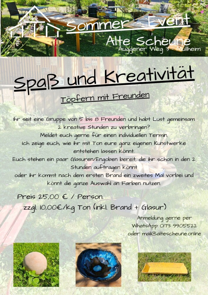 Liebe Töpferfreunde,der Herbst kommt, die Temperaturen werden zu kalt um in der Scheune oder im Garten zu Töpfern. Nach der Winterpause geht es weiter und ich freue mich schon jetzt wieder auf euch! Wer trotzdem Lust zum Töpfern hat, kann sich über die Wintermonate zu meinen Kursen bei der VHS… Töpfern im Garten weiterlesen